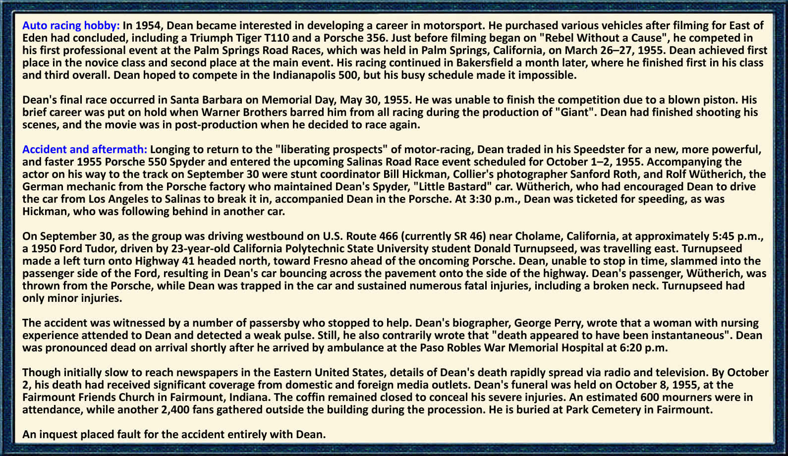 Harris found Dean very exciting to work with. "He was always inventing; you never knew what was coming. You had to listen, watch; you had to be there." She found him exciting and highly imaginative and was impressed with the way he studied music with composer Leonard Rosenman and played Bach on his recorder alone in his dressing room.