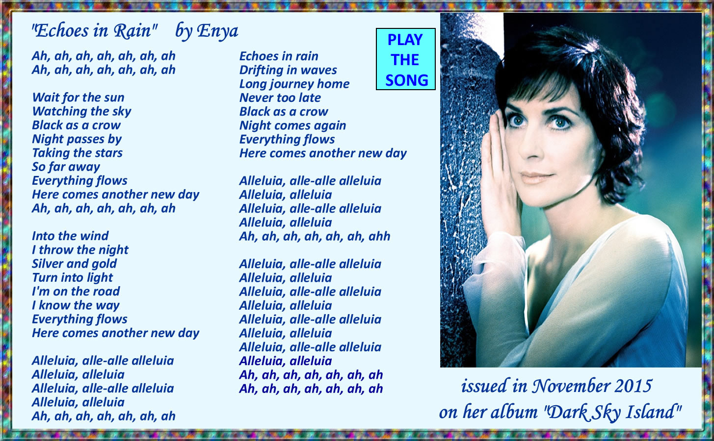 plus: "Only Time" - "The Best of Enya" - The Celts